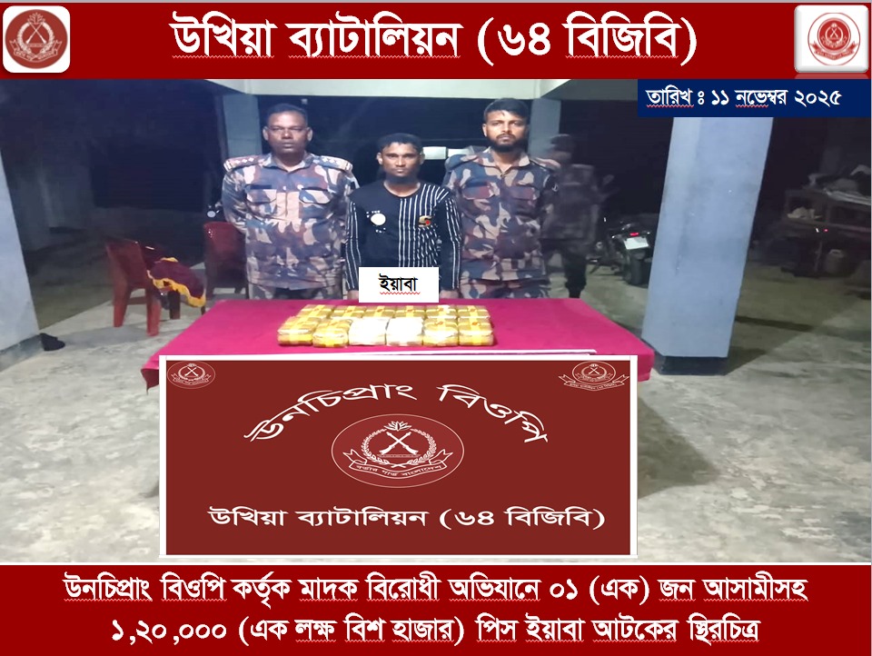 উখিয়ায় বিজিবির অভিযানে ১ লাখ ২০ হাজার ইয়াবাসহ যুবক গ্রেফতার
