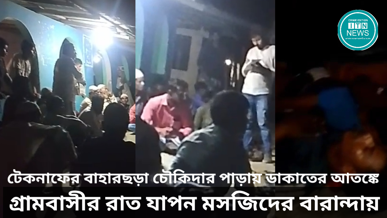 টেকনাফের বাহারছড়া চৌকিদার পাড়ায় ডাকাতের আতঙ্কে গ্রামবাসীর রাত যাপন মসজিদের বারান্দায়