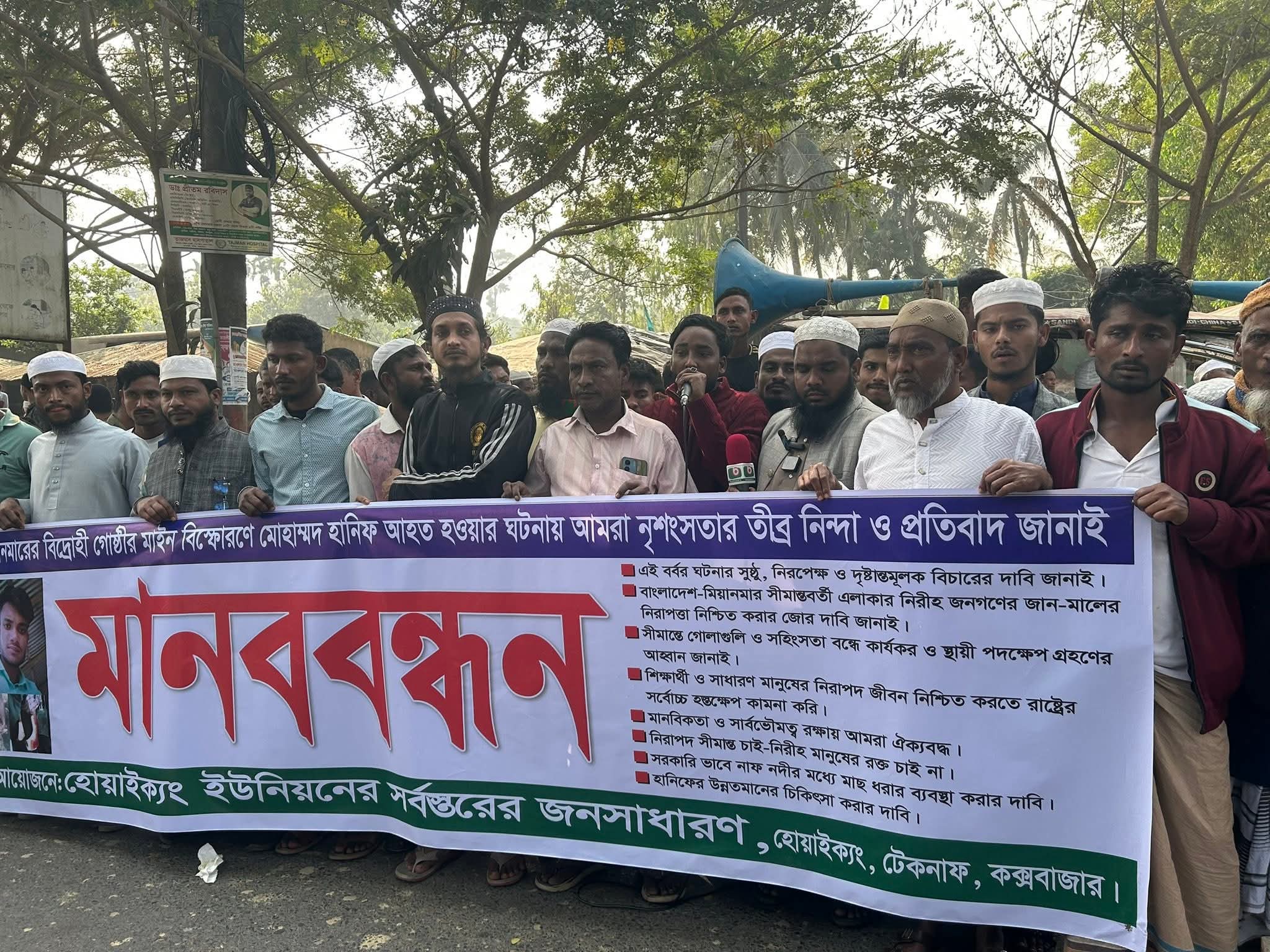 এই বর্বর ঘটনার সুষ্ঠু, নিরপেক্ষ ও দৃষ্টান্তমূলক বিচার নিশ্চিত করা; বাংলাদেশ–মিয়ানমার সীমান্তবর্তী এলাকার নিরীহ জনগণের জান-মালের নিরাপত্তা নিশ্চিত করা; সীমান্তে গোলাগুলি ও সহিংসতা বন্ধে কার্যকর ও স্থায়ী পদক্ষেপ গ্রহণ; শিক্ষার্থী ও সাধারণ মানুষের নিরাপদ জীবন নিশ্চিতে রাষ্ট্রের সর্বোচ্চ হস্তক্ষেপ; মানবিকতা ও সার্বভৌমত্ব রক্ষায় ঐক্যবদ্ধ অবস্থান; ‘নিরাপদ সীমান্ত চাই—নিরীহ মানুষের রক্ত চাই না’ স্লোগান বাস্তবায়ন; সরকারি ব্যবস্থাপনায় নাফ নদীতে মাছ ধরার সুযোগ সৃষ্টি; এবং গুলিবিদ্ধ হানিফের উন্নতমানের চিকিৎসার ব্যবস্থা করা।