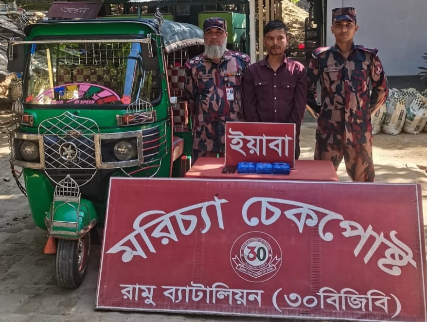 কক্সবাজারের রামু ব্যাটালিয়ন (৩০ বিজিবি) এর মরিচ্যা চেকপোস্টে অভিযান চালিয়ে ১২ হাজার পিস বার্মিজ ইয়াবা ও একজ সিএনজি চালককে আটক করেছে বর্ডার গার্ড বাংলাদেশ (বিজিবি)। উদ্ধারকৃত ইয়াবার বাজারমূল্য প্রায় ৩৬ লাখ টাকা বলে জানিয়েছে ব্যাটালিয়ন কর্তৃপক্ষ।