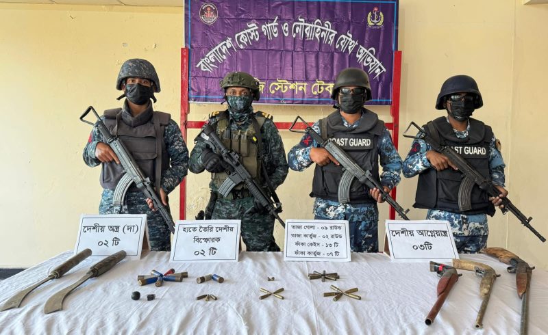 টেকনাফে কোস্ট গার্ড ও নৌবাহিনীর যৌথ অভিযানে গোলা-বারুদসহ দেশীয় আগ্নেয়াস্ত্র উদ্ধার।